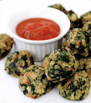 Checking your “good” list for a fun, healthy, and versatile dish to serve throughout the holidays? Look no further, because baked spinach and kale “holly” bites will make spirits bright at any table this season! The festive green and white color beckons to be arranged in the shape of a wreath, mistletoe, or tree, and garnished as such with grated cheese ”snow”, and red pepper flakes! With so many desserts, cookies, and sweets this time of year to choose from, it can be a gift to have something a bit more savory to balance the palette out. Like cookies, you can even make the mixture ahead, freeze, and bake when ready! Spinach and kale bites are delicious served warm straight from the oven, room temperature with other hors d’oeuvres (mindful how long they are sitting out if using dairy products), as an alternative to traditional meatballs in sauce, or on a sandwich. The possibilities to enjoy these healthy, scrumptious bites are limitless and all the merrier with marinara, hummus, yogurt and dill, spicy olive oil, lemon or garlic aioli! Packed with iron, folate, vitamins A, C, K, and E, plus calcium, magnesium, zinc, and potassium, they are not only delightful, but a powerhouse of nutrients! As with most of my recipes, they are adaptable to specific health and dietary concerns, as well as modifiable for taste. They can certainly be relished any time of year-not just for dashing from holiday event to event! I usually make an extra batch that can be reheated in the months after. With a cup of cider and cozy evening by a fire, or tableside for a seasonal soirée, hearts will grow with yuletide cheer when spinach and kale “holly” bites appear!