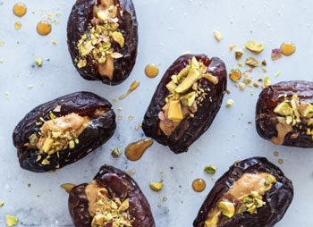Dating back to the Roman Empire, dates have long been enjoyed as a “date night” food delight. In fact,” Dulcia Domestica”, dates stuffed with chopped walnuts or pine nuts, a dash of black pepper and drizzle of warm honey (sometimes a bit of red wine poured in as well), was a popular vendor food at the Coliseum. Think about going to the big event and buying concessions with your date and instead of candy or popcorn, it’s actually dates! These sweet treats have stood the test of time and still make a great modern-day snack for game day, or most any day! They are quick and easy to make, nutritious, delicious, and incredibly versatile. Just slice 12 or 24 Medjool dates lengthwise(on parchment, or non-stick surface)and fill with choice of nuts, coconut, nut butter, seasoning’s and herbs, cheese, grains, etc… ,then drizzle with either warm honey, maple, balsamic, or tahini, citrus zest, and/or wine, brandy, and can leave as is or wrap with pre-cooked plant based bacon or prosciutto(“carrot bacon” directions in Tips)For a warm, crispy version with melted cheese, wrap dates and secure with toothpick, then bake at 350 degrees for 10-15 min. Unsliced dates can also simply be wrapped whole as an appetizer in itself, warm or cold, and further dressed with a glaze, drizzle, or dip. A welcome hors d’oeuvre for most any event where the possibilities are limitless, and for even more fun, have a DIY with ingredients where guests can experiment and assemble their own stuffed and wrapped dates! For a sweet and savory vegetarian Valentine’s dish your sweetie will savor, cook your favorite rice(basmati complements this well)or quinoa in veggie broth or stock, add fresh sautéed onion, garlic, season with cinnamon, cardamom, cumin, and a bit of black pepper, stir in some chopped dried apricot, dates, sultans or another fruit of choice like cranberries, then toss in toasted nuts such as pistachios, almonds, or walnuts when it’s about to be taken off the stove. Sprinkle a few fresh herbs like parsley or mint on top to finish.